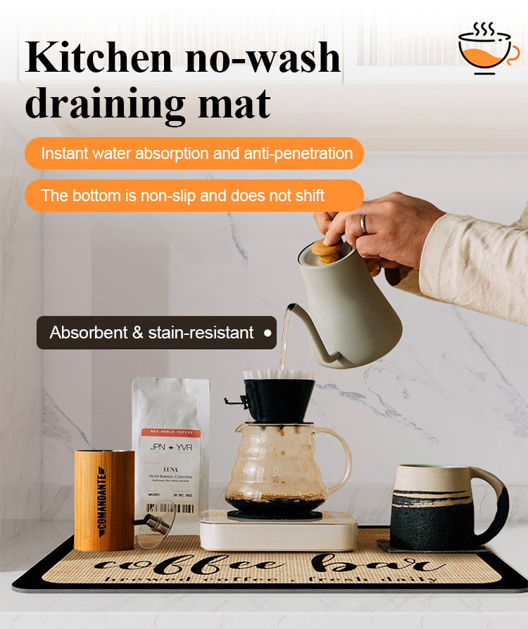 No-Wash Kitchen Draining Mat - Quick-Dry Diatomite Dish Drying Pad - Super Absorbent Anti-Slip & Mold-Proof Countertop Protector for Modern SG Homes
